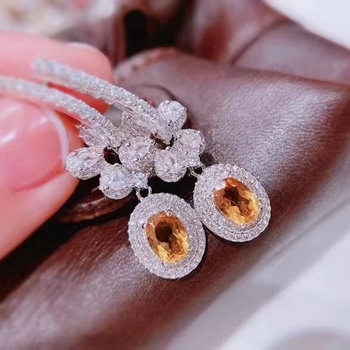 Joyería de lujo de diseñador de Plata de Ley 925, piedra curativa de cristal espiritual, pendiente de gota de encanto de citrino Natural