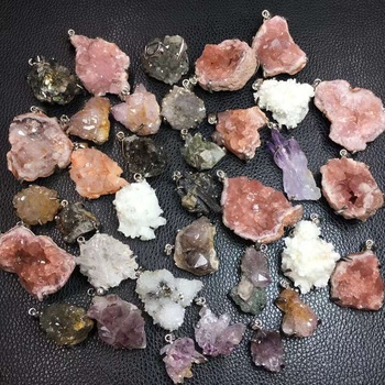 Pietra curativa naturale cristallo fatto a mano in argento sterling set collana con ciondolo in miniera di minerale gioielli con ciondoli di design