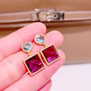 24k banhado a ouro 925 prata designer fine jewelry natural ametista pirâmide azul topázio coração charme gota brinco